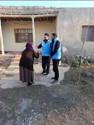 Köy muhtarı Muhammet Aktaş ile birlikte yaptıkları saha çalışması neticesinde köydeki ihtiyaç sahibi vatandaşları tespit edip hayırsever vatandaşların emanetlerini kendilerine ulaştırdılar.